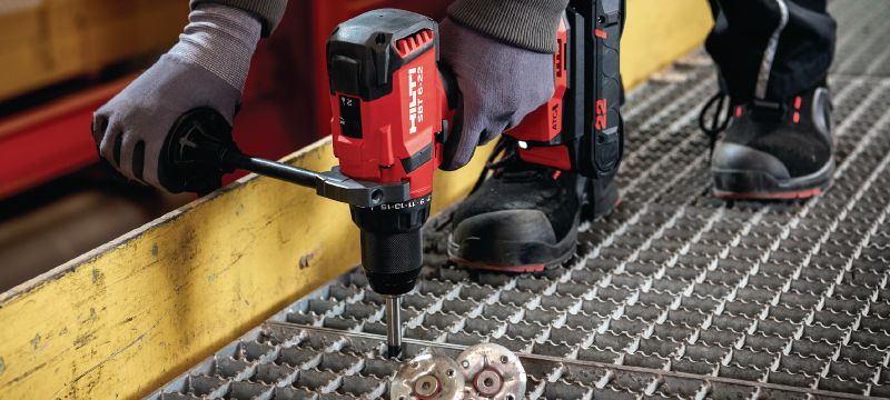 - Στερέωση μεταλλικής σχάρας σε χαλύβδινες κατασκευές με δίσκο στερέωσης μεταλλικών σχαρών X-FCM-R