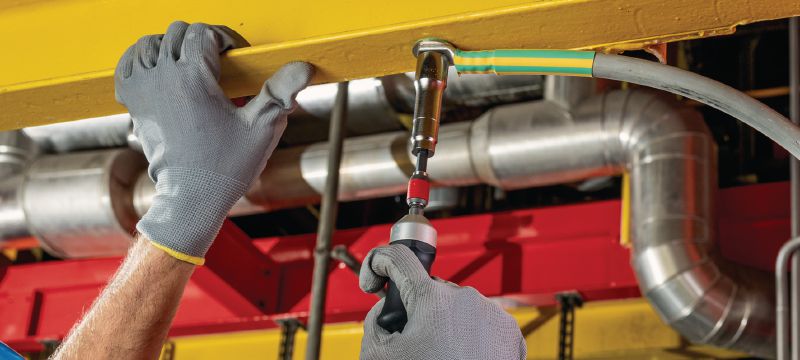 Πείρος με σπείρωμα (ανθρακοχάλυβας, μετρικό σπείρωμα) για ηλεκτρολογικές συνδέσεις σε χάλυβα, σε ήπια διαβρωτικά περιβάλλοντα. Συνιστώμενη μέγιστη διατομή συνδεδεμένου καλωδίου: 120 mm²