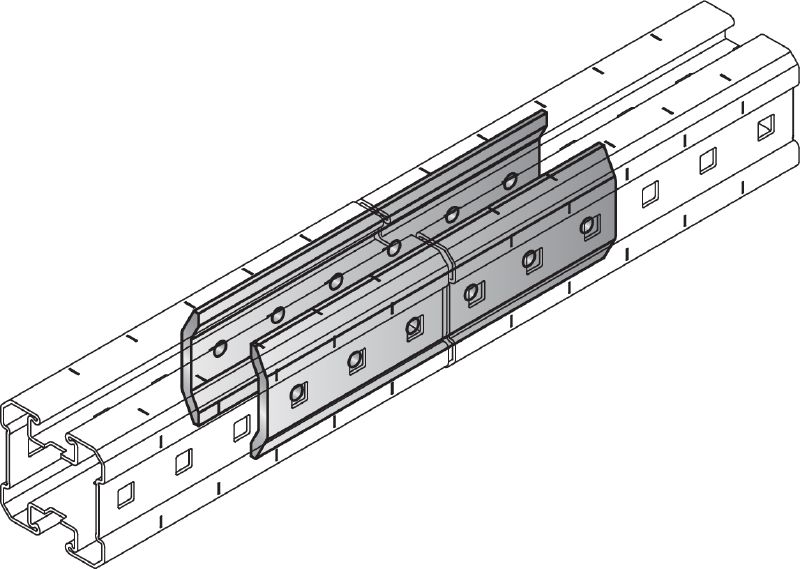 Συνδετήρας γαλβανισμένος με εμβάπτιση εν θερμώ (HDG) που χρησιμοποιείται για τη στερέωση δοκών MIQ κατά τη διαμήκη διεύθυνση για μεγάλα ανοίγματα σε εφαρμογές βαρέος τύπου